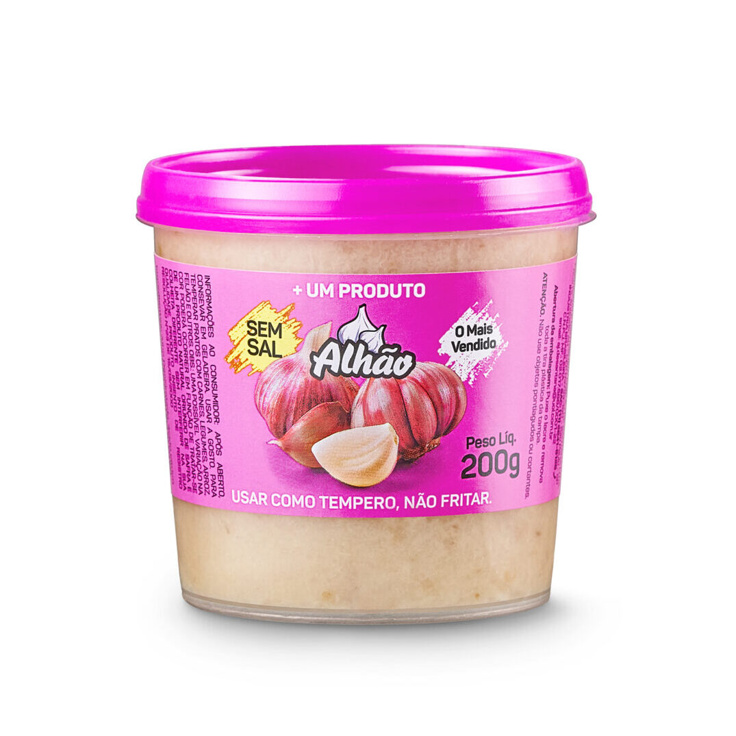 Alhão triturado 200g é super fácil e prático para o dia-a-dia na cozinha. O potinho de 200g é ideal para quem aprecia o sabor ardente de um bom alho, mas não precisa cozinhar todos os dias e nem para tanta gente. A medida certa e prática, com a qualidade Alhão.